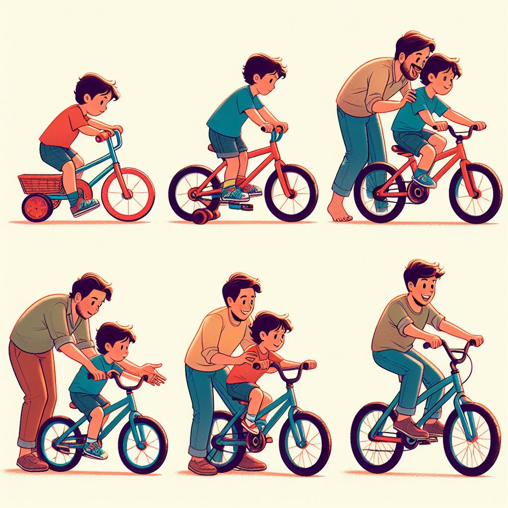 자전거 타기는 넘어지고 나서도 다시 일어나기를 수없이 반복하는 과정에서 균형감각을 몸으로 익히면서 비로소 잘 탈 수 있게 됩니다.